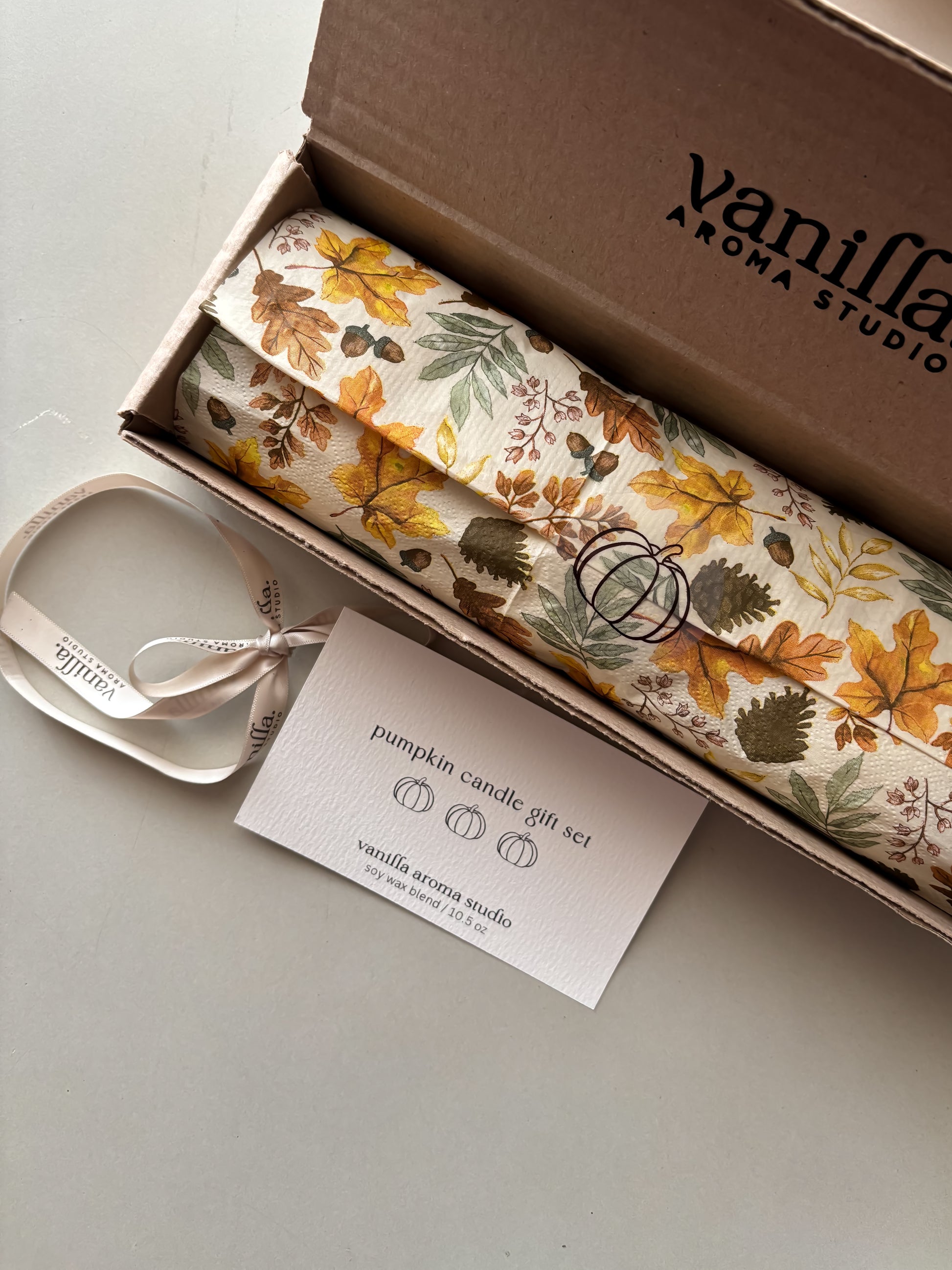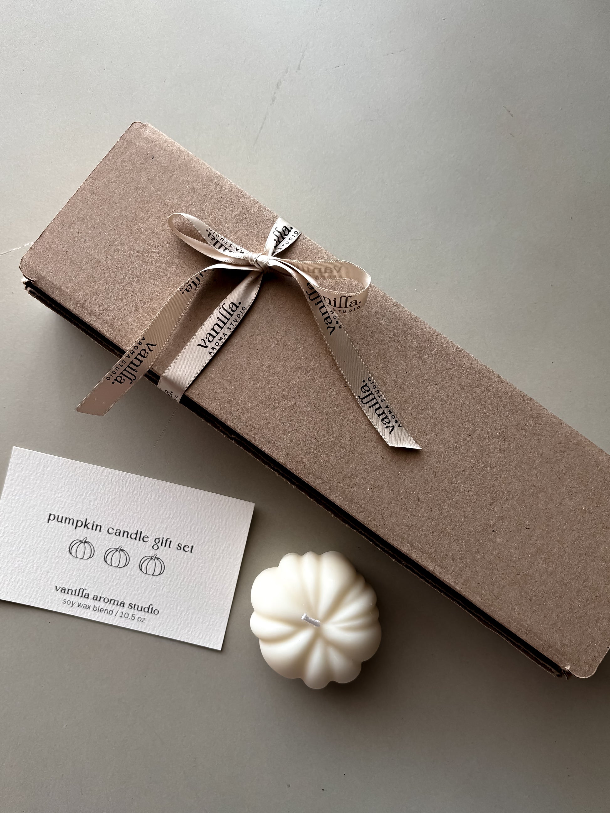 This box contains 3 pumpkin shaped candles.